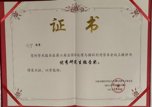 2022年8月22日-24日,以“水循环利用与绿色低碳水系统”为主题的第六届全国水处理与循环利用学术会议在广西桂林成功举行。本次会议由中国环境科学学会水处理与回用专业委员会、清华苏州环境创新研究院、桂林理工大学和环境模拟与污染控制国家重点联合实验室联合主办。全国高等院校、科研院所、环保企业和管理部门的专家学者700余人参加会议,并围绕该领域的前沿科学问题、关键技术、工程实践和政策管理等开展交流。会议形式包括特邀报告、口头汇报和海报等,并经专家推荐、评委投票等多轮评审,选出博士研究生张聪和硕士研究生刘宁分别获得优秀海报奖和优秀研究生报告奖。