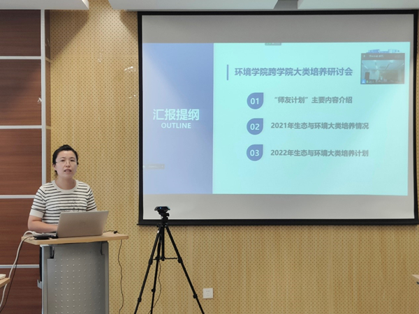 环工系系主任王灿老师、环生系系主任毛国柱老师、建环系副系主任郑雪晶老师分别详细介绍了各系2021年大类招生及培养情况,介绍了过往好的经验做法与面临的新机遇、新挑战,并对2022年跨学院大类学生培养工作设想进行报告分析,提出了可行性方案。