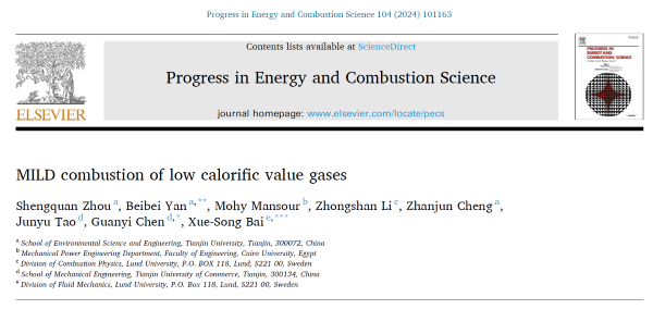 天津大学环境学院以第一单位在能源和燃烧领域国际顶级期刊《Progress in Energy and Combustion Science》发表了题为“MILD combustion of low calorific value gases”的论文。周生权博士后/助理研究员为第一作者,天津大学环境学院颜蓓蓓教授、天津大学/天津商业大学陈冠益教授、瑞典隆德大学白雪松教授为共同通讯作者(图1)。