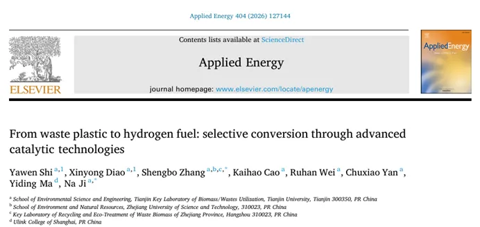 Yawen Shi#, Xinyong Diao#, Shengbo Zhang*, Kaihao Cao, Ruhan Wei, Chuxiao Yan, Yiding Ma, Na Ji*. From Waste Plastic to Hydrogen Fuel: Selective Conversion through Advanced Catalytic Technologies [J]. Appl. Energy 404 (2026) 127144.