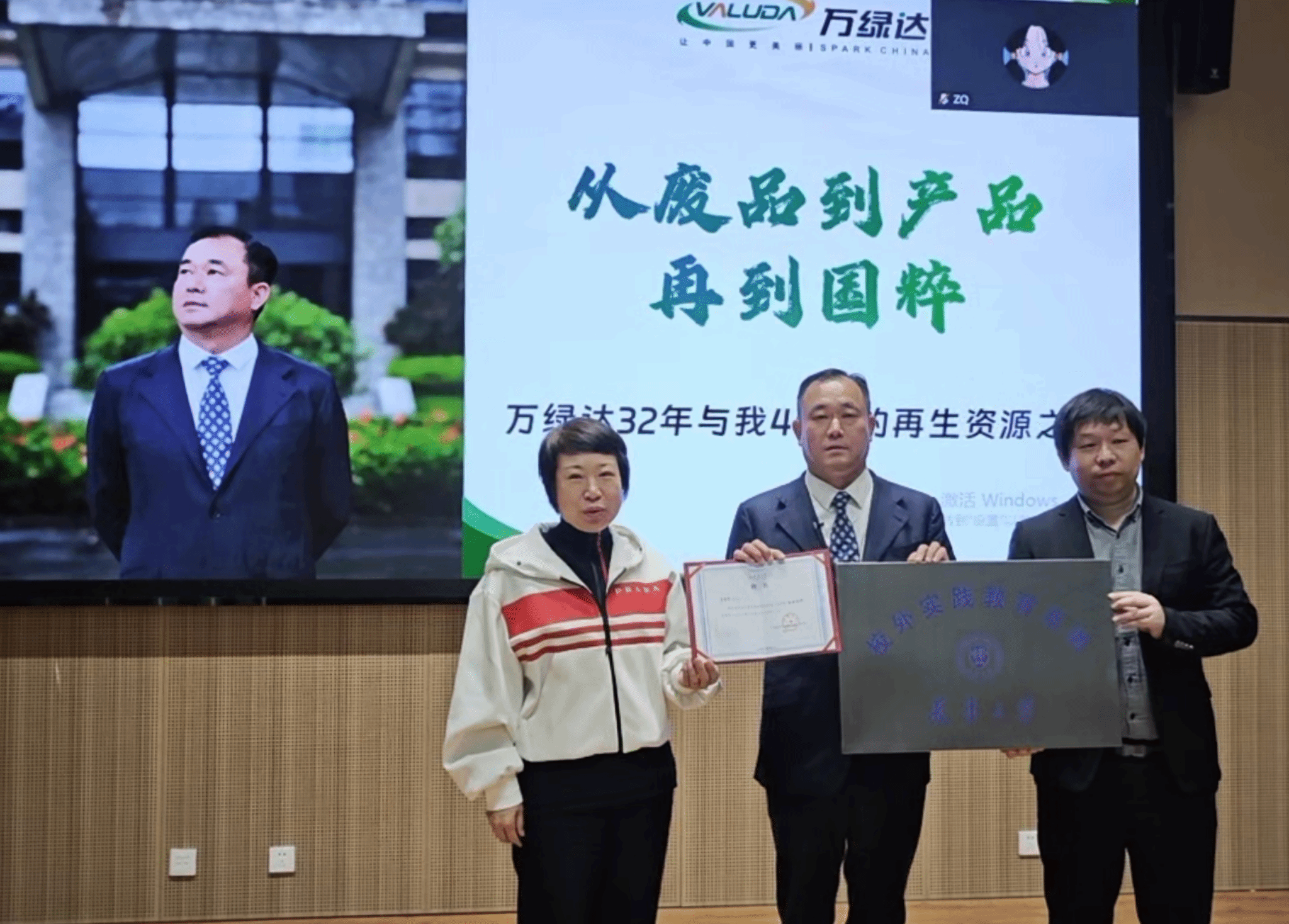在面向本科生的分享环节,万绿达集团副总裁吴晓亮以《从交流到交融》为题,讲述了企业如何通过技术赋能与文化创新,将废旧物资转化为高附加值产品,实现绿色、低碳、循环发展。董事长李远峰,结合自身创业经历与行业洞察,分享了《从废品到产品再到国粹》的循环经济产业的广阔前景。他强调,资源循环利用不是简单的“收废品”,而是一项需要技术、情怀与战略定力的系统工程,希望更多年轻人投身绿色事业。活动最后,举行了“校外实践教育基地”与“企业导师”授牌仪式,标志着万绿达集团与天津大学在协同育人、产教融合方面迈出了实质性步伐。