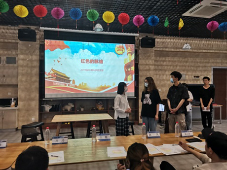 在主持人的介绍之后,各支书分别对主题团日进行了汇报展示。在展示中,各支部开展多种活动:既有理论学习,读书分享,青年大学习,集体观看红色电影的学习活动,更有大地彩绘,主题诗会,街坊,录制MV的特色活动来共同回顾国家发展壮大的光辉历史,增强爱国意识,树立文化自信。
