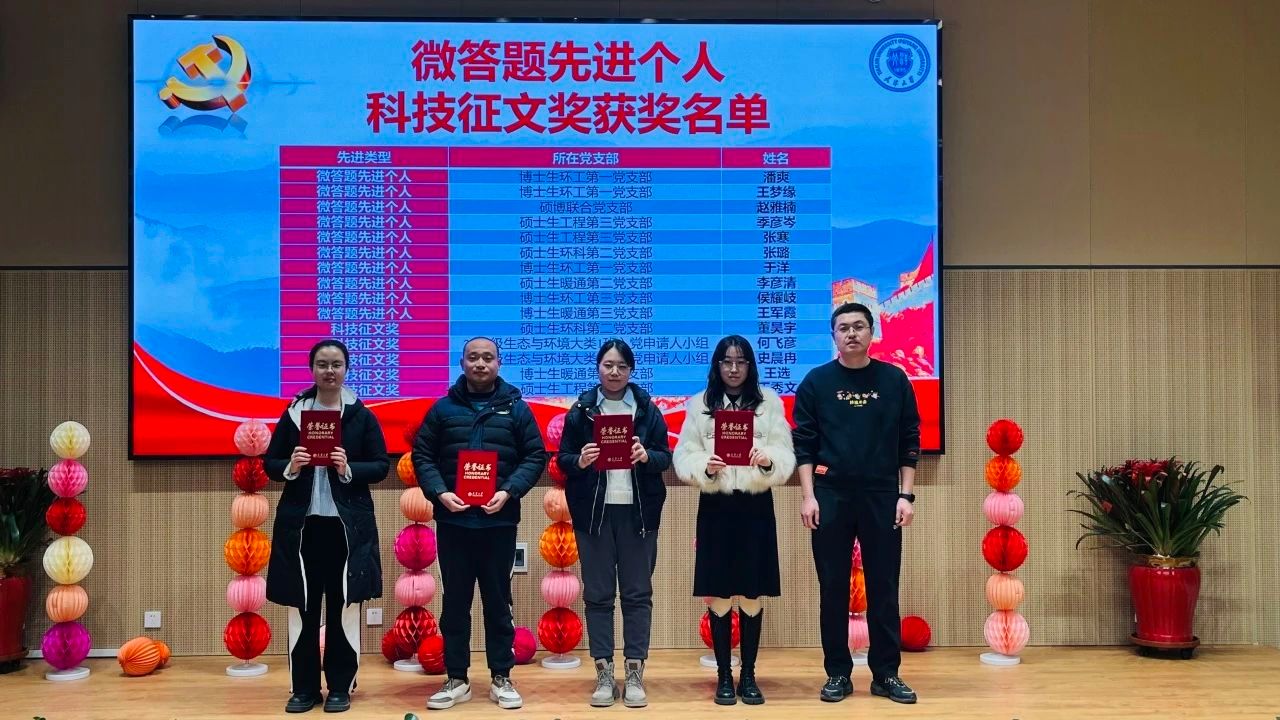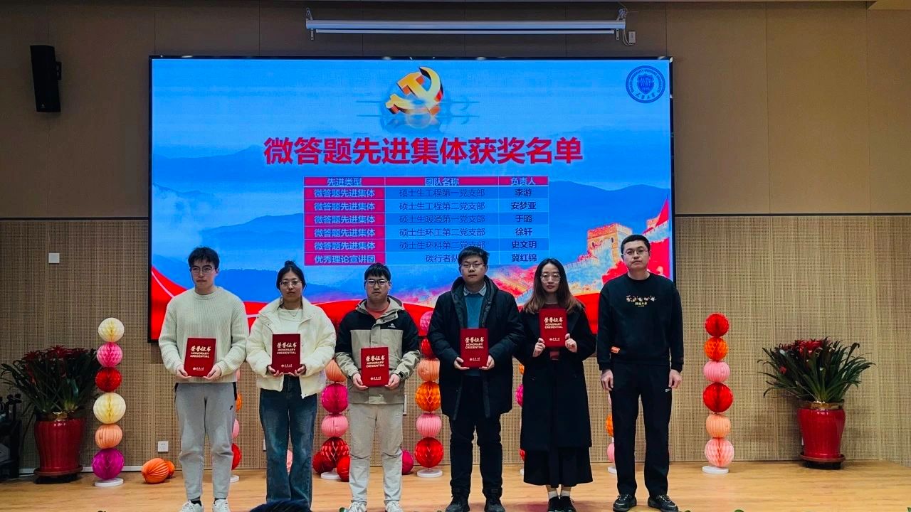 会议开始,胡宏远老师宣读了表彰决定。随后,张灿副书记、张喜盈老师、李维华老师对2024年度环境学院优秀党支部、优秀理论宣讲团、优秀党建创新案例、微答题先进集体、微答题先进个人、优秀科技强国征文、党员先锋岗、优秀读书笔记进行了表彰,并为与会代表颁发了证书。
